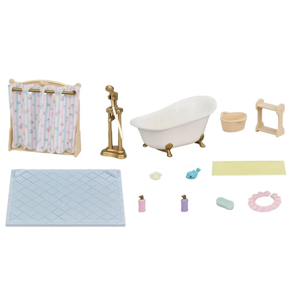 Sylvanian evinde şık bir banyo oluşturmaya hazır mısın? Bu Banyo ve Duş Seti ile hayallerindeki banyoyu kurabileceksin. Üstelik duş perdesinden şampuanlara çeşitli aksesuarlarla geliyor. Hatta bebek figürlerinin gözlerini şampuandan koruyan bir bebek banyo şapkası bile var! Çocuklarda yaratıcı taklit etme yeteneğini geliştirir.
