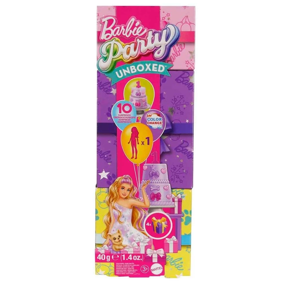 İyi ki doğdun minik dostum!Bir pakette 10 sürpriz bulunan Barbie Parti Paketi Minik Dostumun Doğum Günü Serisi, hediye kutusundan ilham alan ambalajı ve evcil hayvan doğum günü temalı parçaları ile benzersiz bir paket açma deneyimi sunar. Seride üç farklı bebek bulunur: Doğum Günü Fiyonkları, Işıltılı Kalpler veya Parti Yıldızları. Siz hangi sürpriz bebekle karşılaşacaksınız? Parti temalı kıyafetler, giysi aksesuarı ile sevimli bir evcil hayvan ve pasta süsleme aletlerini keşfetmek için hediye paketlerini açın. Minikler, pastayı süsleyebilir ve tüylü dostları için doğum günü partisi verebilir. Parti sürprizlerinin devam etmesini isteyen çocuklar, serideki tüm bebekleri koleksiyonlarına ekleyebilir.Paketi heyecanla açan çocuklar, renkli upuzun saçlara ve eğlenceli bir parti kombinine sahip bir bebekle karşılaşır. Gizemli hediyeleri açmaya devam ederek partinin yıldızını keşfedin. Üzerine çok yakışan parti aksesuarı ile birlikte gelen sevimli minik evcil hayvanı çok seveceksiniz. Hayvan severler ve yaratıcı çocuklar; hamur torbası, kalıp tepsisi, kalp şeklindeki kaşık ve spatulayı kullanarak 2 katlı bir pasta hazırlayıp süslerken kendilerini ifade ettikleri, duyusal gelişimi destekleyen oyunları keşfedebilir. Renk değiştirme özelliği ile eğlence devam ediyor! Soğuk ve ılık su kullanarak Barbie'nin yüzündeki parti parıltısı detayını keşfedin ve minik evcil hayvanın gözlerini tekrar tekrar 'kapatıp açın'. Her kutuda parti temasının bulunduğu Barbie Parti Paketi Minik Dostumun Doğum Günü Serisi bebekleri, özellikle partileri ve sürprizleri seven 3 yaş ve üzeri çocuklar için eğlenceli bir hediyedir.Barbie, oyun saatine renk katar, çocukları çeşitli hikayeleri hayal etmeleri için teşvik ederken onların yaratıcılıklarının ve oyun kurma becerilerinin gelişmesine de katkı sağlar. Çocuklar Barbie ile oynarken sınırsız hayal kurar. Çocukların arkadaşları ile oynayacakları oyunlar sosyalleşmelerine yardımcı olur.Ürünün; Mor Kutu, Mavi Kutu ve Pembe Kutu olmak üzere 3 farklı modeli bulunmaktadır.Kutu içerisinde; Barbie bebek, mini evcil hayvan, hamur karışımı, pasta, kaşık, spatula, kalıp tepsisi ve evcil hayvan aksesuarı bulunmaktadır.Kutu ölçüsü: 11,5 x 8 x 32,5 cm