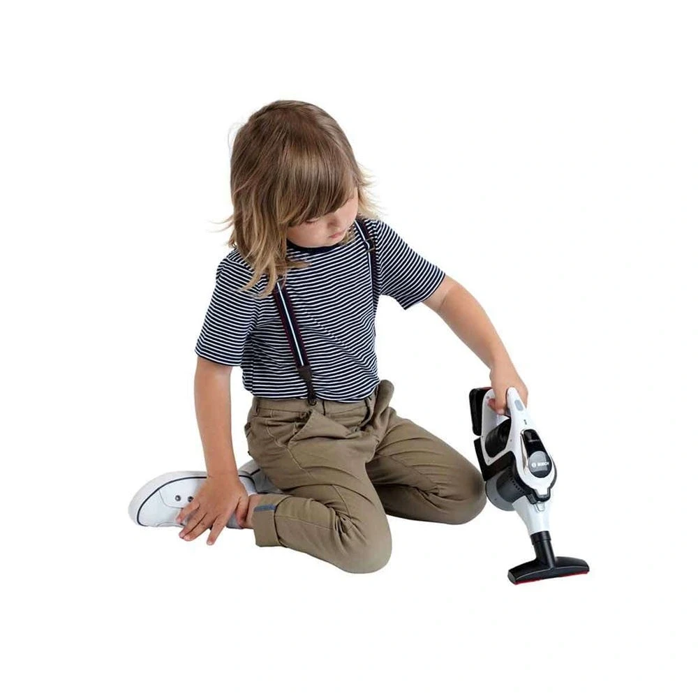 Bosch Unlimited Kablosuz Dikey Süpürge ile tozlara karşı savaş başlasın!Orijinal Bosch şarjlı dikey süpürgeden esinlenerek yapılmış bu oyuncak süpürge; pratik kullanımı ve kuvvetli çekim gücüyle çocuklara oyun oynarken gerçek bir temizlik deneyimi yaşatacak.Gerçekçi sesi ve çalıştığında yanan led ışığı ile minikler bu süpürge ile oynamaya bayılacaklar!80 cm. uzunluğu ile çocukların boyuna uygun olarak tasarlanan bu süpürgenin uzun başlığı çıkartılıp kolaylıkla el süpürgesine çevrilebilir, toz haznesi haznenin üstündeki tuşa basarak kolayca açılıp boşaltılabilir.Çocuğunuzun temizlik alışkanlıklarını daha küçük yaştan alması ve eğlenceli bir şekilde size yardımcı olması özgüveninin gelişmesine katkı sağlar. Bu süpürge ile oynayacakları oyunlar ile çocuklar kas gelişimlerini, ince motor becerilerini ve hayal güçlerini geliştirir.Ürün; 3 x 1,5V AA pil ile çalışmaktadır. Piller kutuya dahil değildir.Kutu içerisinde; el süpürgesi için küçük başlık ve makinenin içerisine çekebilmeniz için köpük tozlar yer almaktadır.