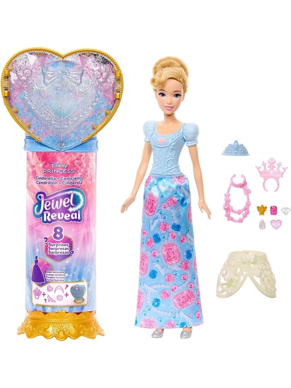 Disney Sürpriz Takılar serisindeki Cinderella bebek ve aksesuarları, sürprizlerle dolu hikayelere ilham verir ve büyüleyici bir kutu açma deneyimi sunar.