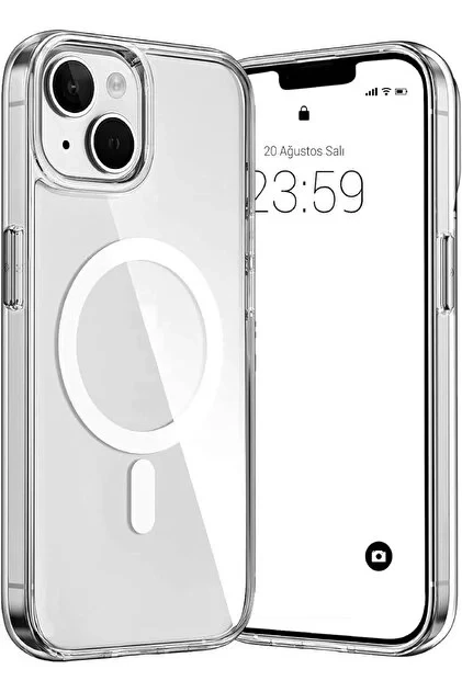 İphone 15 Plus kullanıcıları için özel olarak tasarlanmış Miscase marka Magsafe sert şeffaf kapak, telefonunuzu güvenle korurken şık bir görünüm sunar.