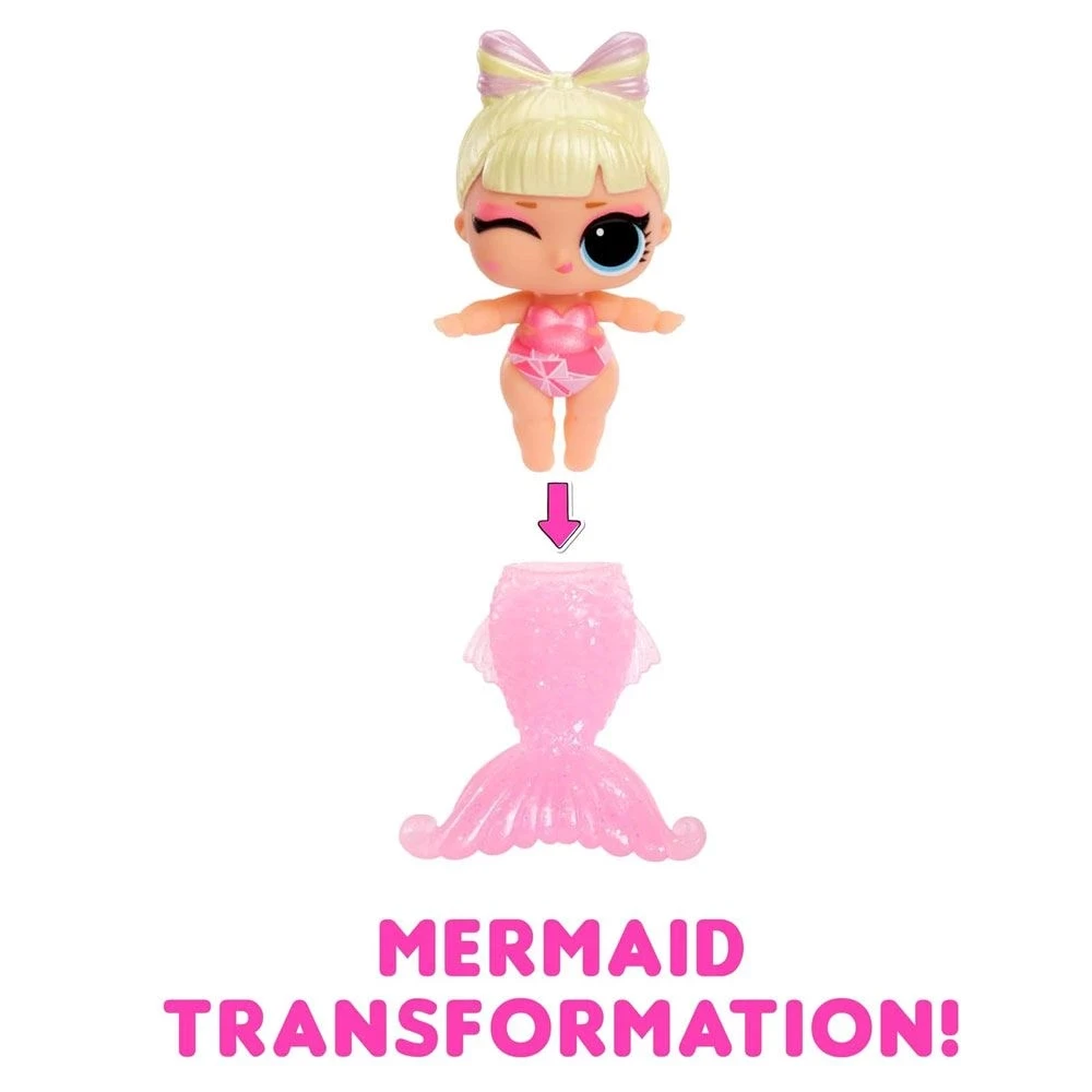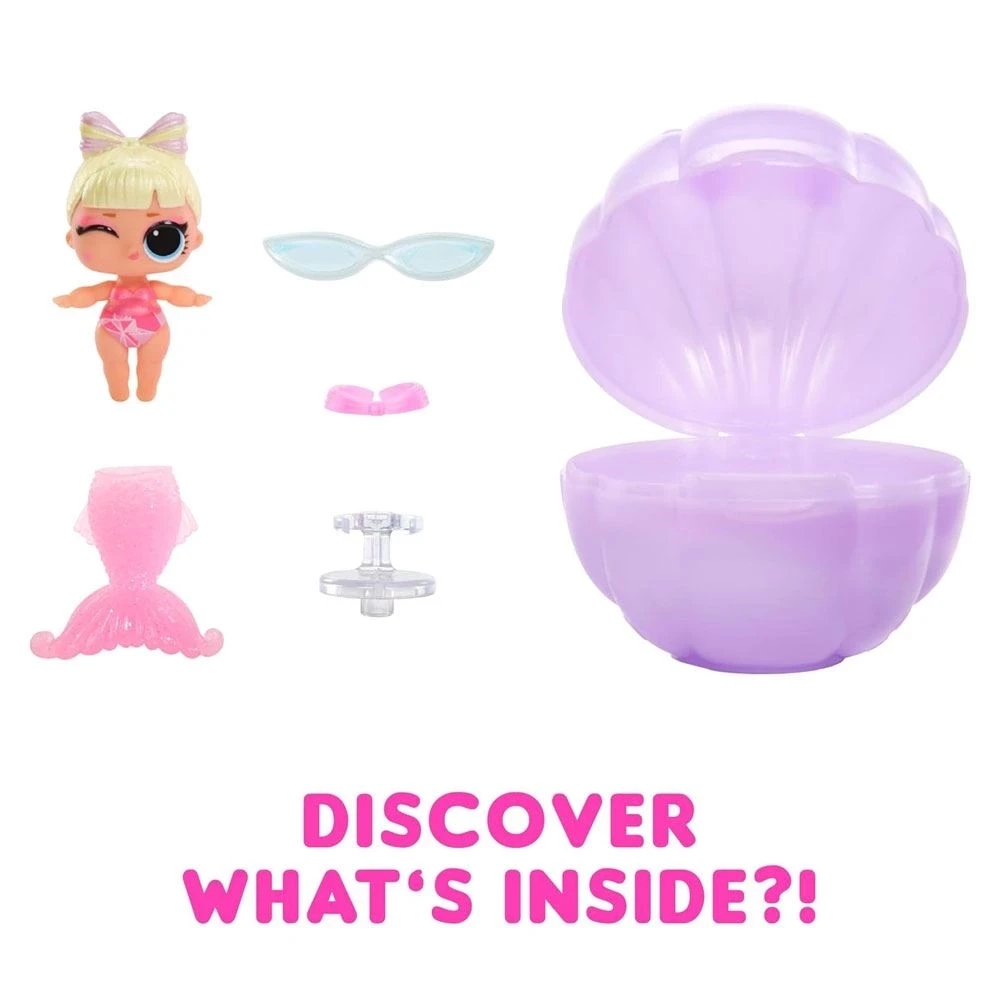 Suyun altında büyülü bir maceraya doğru yüzelim! Deniz Kızı Bebeklerinin küçük kız kardeşleri, LOL Tots Deniz Kızı Bebekleri Lil Sisters ile tanış! Paketten sürprizleri çıkarmaya başla ve bebeğine deniz kızı kuyruğunu tak. O da ne? Kuyruğu soğuk suda renk değiştiriyor! Dahası deniz kabuğu şeklindeki topun içerisinde bebeğini sergileyebilirsin! 8 farklı karakterden hangisi sana çıkacak? Her bebek kendi stiline ve deniz kabuğu şeklindeki top standına sahiptir. Her pakette sadece 1 adet bebek bulunur ve her biri ayrı satılır.