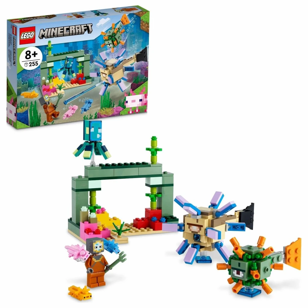LEGO® Minecraft® Gardiyan Savaşı (21180),8 yaş ve üzeri oyuncuları çok satan oyundan tanıdık karakterler ve özelliklerle dolu bir su altı macerasına çıkarır. Minecraft oyuncuları için okyanuslarca eğlence Çocuklar, okyanusun dibinde geçen bu ilgi çekici Minecraft görevinde aksiyon dolu zorluklarla karşılaşır. Önce renkli mercan kayalıkları arasında bir anıt inşa etmeleri gereklidir. Gizli bir hazine ile birlikte 2 simgeleşmiş Minecraft mob’u var: Bir gardiyan ve yaşlı gardiyan, onları durdurmaya kararlı. Çocukların görevlerine devam edebilmek için üçlü mızrakla ve 3 yardımsever aksolotlun yardımıyla düşman mob’ları yenmeleri gerekir. Büyük gardiyan kuyruğunu salladığında lazer füze fırlatan yaylı atıcı, ekstra tehlike sunar. Sınırsız yaratıcı oyun olasılıklarıyla bu LEGO yapım parçası macerası, Minecraft oyunlarının tüm eğlencesini çocukların ellerine verir. • Su altı macerası – LEGO® Minecraft® Gardiyan Savaşı (21180),oyuncuları çok satan oyundan karakterler ve özelliklerle dolu, yaratıcı bir okyanus altı görevine götürür. • Orijinal aksiyon – İnşa edilebilen mercan kayalığı ve anıt yapısı, ayrıca simgeleşmiş Minecraft® karakterleri içerir: dalgıç, parlayan mürekkep balığı, gardiyan, yaşlı gardiyan ve 3 aksolotl • Uygulamalı oyunlar – Oyunun tüm heyecanını çocukların ellerine veren bu Minecraft® macerasında inşa edilecek bir mercan kayası anıtıve savaşacak kötü düşmanlar var • Kullanışlı bir hediye – Bu set, 8 yaş ve üzeri Minecraft® oyuncularının ilgisini çekecek ve onları eğlendirecek açık uçlu oyun potansiyeliyle doludur • Sınırsız olasılıklar – Bu yaratıcı oyun setinin yüksekliği 12 cm, genişliği 12 cm, derinliği 7 cm’dir