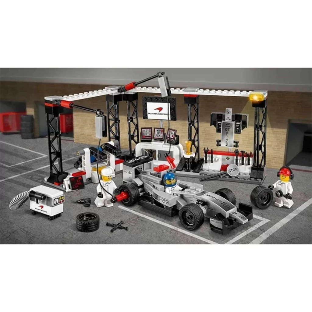 İçerisinde aksesuarları ile birlikte bir yarışçı, bir kadın pist görevlisi bir de erkek pit görevlisi mini figürleri vardır. Aksesuarların içinde bir kask, kulaklıklar ve dur/başla işaretleri vardır.