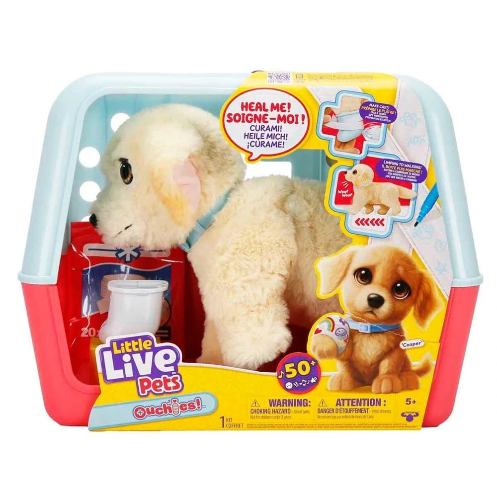 Yavru köpek iyileşiyor!Minik ve biraz yaramaz Cooper, çok sevdiği top yakalama oyununu oynarken düştü ve kendini yaraladı. Hatta ayağını sakatladı! Bu yüzden oyun oynamaya ara vermek zorunda kaldığı için çok mutsuz. Senin ilgi ve bakımına, özellikle de sevgine ihtiyaç duyuyor. Kızaran yanakları ile hislerini belli ediyor, yeniden ayağa kalkıp top yakalama oyunu oynamak içinse sabırsızlanıyor. Minik köpeğin sakat ayağını tedavi edip onu iyileştirmeye hazır mısın?Set içerisinde yer alan ateli ve bandajı ıslatarak tıpkı gerçek bir veteriner gibi Cooper’ın ayağını sarabilirsin. Kuruduğunda gerçekçi bir alçıya dönüşüyor ve oyun eğlencesi katlanıyor. Yavru köpeğin iyileşme yolculuğunu daha da özel kılmak için bandajlar kuruduktan sonra onu eğlenceli süslemelerle kişiselleştirebilirsin. İyileştiğinde sadece mutlu sesler çıkarmakla kalmıyor, 50’den fazla ses ve tepki ile her anı gerçekçi kılıyor. Dokunmaya tepki veren ve sevimli sesler çıkaran Cooper, bandajdan kurtulduğunda önce biraz topallıyor ama sonra eskisi gibi yürümeye başlıyor. Görev tamamlandı ancak 10 adet bandaj sayesinde bu eğlenceyi tekrar tekrar yaşayabilirsin. Yavru köpek yeniden oyun oynamaya hazır!Çocukların yeni hikayeler oluşturarak hayal güçlerinin ve yaratıcılıklarının gelişmesini desteklerken onların oyun kurma ve taklit becerilerine katkı sağlar. Arkadaşlarıyla oynayacakları oyunlar onların sosyalleşmelerine yardımcı olur. Koleksiyon merakını destekler.Kutu içerisinde; köpek, taşıma çantası, atel, 10 adet bandaj ve kullanım kılavuzu bulunmaktadır.Ürün; 4 x 1,5V AA pil ile çalışmaktadır. Piller kutuya dahil değildir.Kutu ölçüsü: 38 x 20 x 29 cm