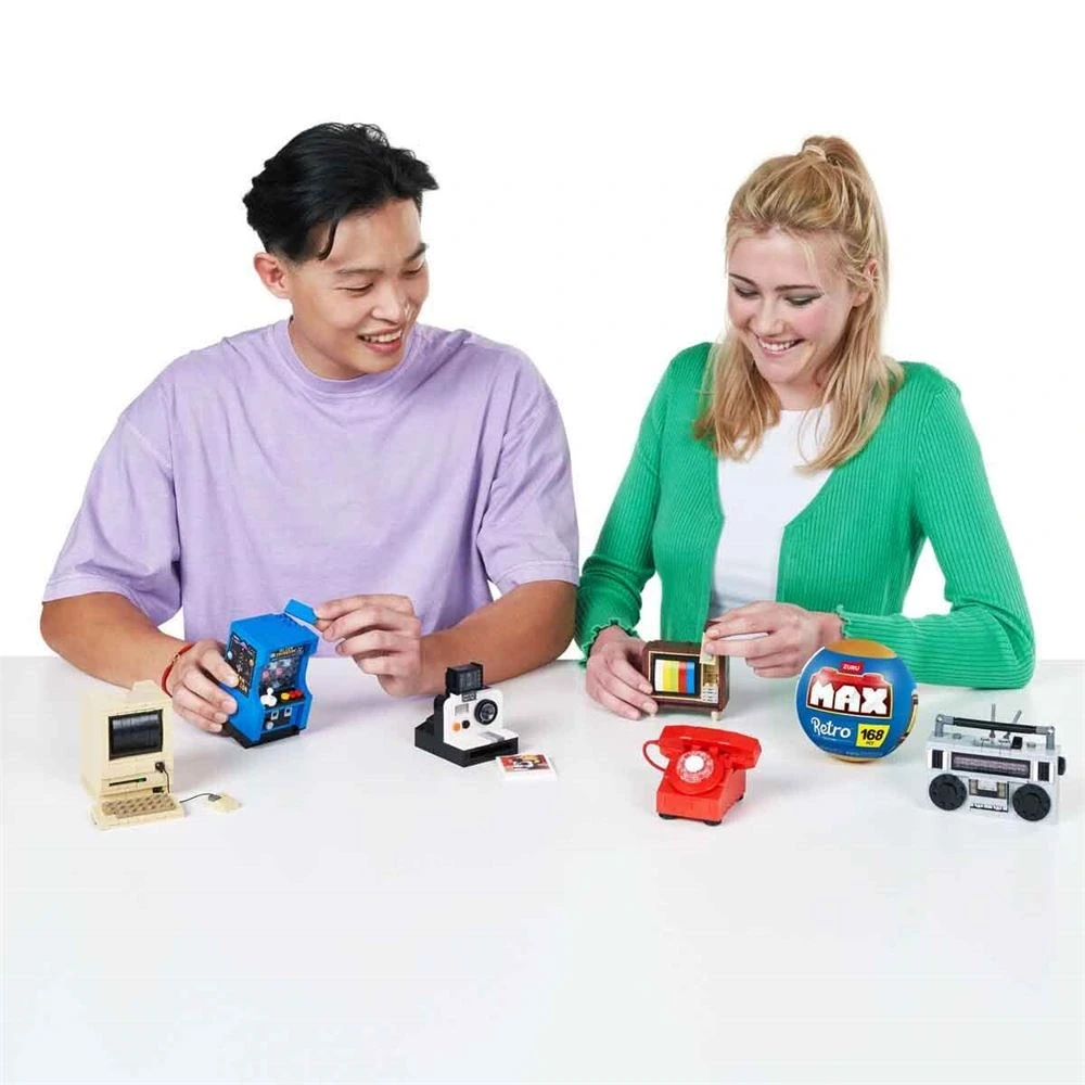 MAX Retro ile zamanda yolculuğa hazır mısın?Geçmişin ikonik eşyalarını günümüze getiren ve onları inşa etme imkanı sunan MAX Retro Sürprizi ile eğlenceye hazır mısın? Birbirinden farklı eşyaları toplayabilirsin ve kendi koleksiyonunu oluşturup geçmişin büyüsünü yeniden yaşayabilirsin. Yaparken çok eğleneceğin MAX Retro Sürprizi ile keyifli anlar ve yeni deneyimler seni bekliyor!Çevirmeli telefon daha önce görmüş müydün? Peki ya polaroid fotoğraf makinesi? Bilgisayar görmüşsündür ama bu bilgisayar gördüklerinden daha farklı! Atari oyun makinesi, televizyon ve kasetçalar radyo… Hepsi geçmişin izlerini taşıyor! Her bir kapsül içerisinde parça sayıları birbirinden farklı olan eşyalar bulunuyor. Parçaları birleştirerek eşyayı tamamlayabilirsiniz. Üstelik diğer yapım oyuncak markaları ile uyumlu parçaları sayesinde farklı projelere kolayca entegre edilebilirsin!Çocukların yeni hikâyeler oluşturarak hayal güçlerinin ve yaratıcılıklarının gelişmesini desteklerken onların oyun kurma ve taklit becerilerine katkı sağlar. Arkadaşlarıyla oynayacakları oyunlar sosyalleşmelerine yardımcı olur. Koleksiyon merakını desteklemeye yardımcıdır.Ürünün; Kaset Çalar Radyo 157 Parça, Polaroid Fotoğraf Makinesi 152 Parça, Atari Oyun Makinesi 162 Parça, Çevirmeli Telefon 141 Parça, Bilgisayar 221 Parça ve Televizyon 168 Parça olmak üzere 6 farklı modeli bulunmaktadır.Paket ölçüsü: 10 x 10 x 10 cm