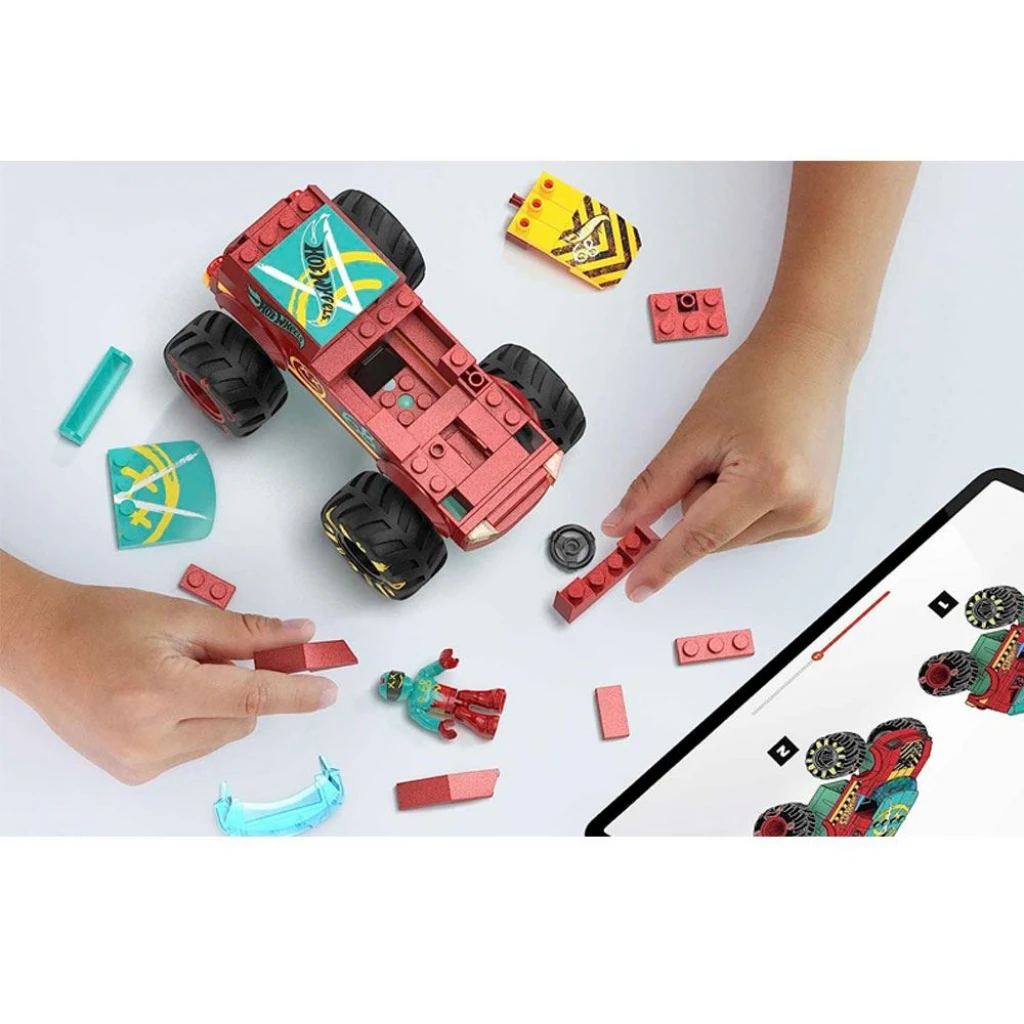Mega Hot Wheels Demo Derby Extreme Çarpışma Seti, bir demo Derby Monster kamyonu, bir rampa, bir engel ve bir hedef içerir - Montaj, yarış, çarpma ve parçalama: Çocukların sadece aracı geri çekmesi ve ardından bırakması yeterlidir, hedefi vururken parçalar havada uçar - Sürücünün parçalarla yapılan mikro aksiyon figürü, sürücü koltuğuna sığar - Parçalar, Mega Hot Wheels ve diğer markaların tüm inşaat setleriyle uyumludur.