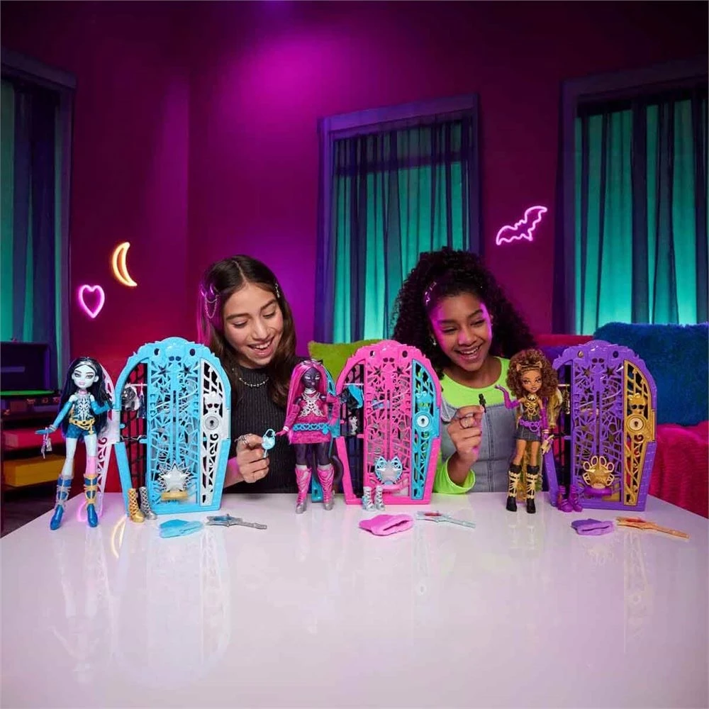 Monster High bebekleri nereye saklandı?Gizemi çözün, Hauntlywood'un kapılarını açın ve Gizemli Arkadaşlar: Monster High bebeği ortaya çıkarın! Çocuklar, büyüteç şeklindeki 'sihirli' anahtar ile haritada ipuçları arayarak dedektif rolüne bürünecekler. Işıltılı kıyafetler, muhteşem uzun eldivenler ve parıltılı mücevherler gibi 19'dan fazla sürpriz keşfedilmeyi bekliyor! Hauntlywood kapıları ardındaki sırları Gizemli Arkadaşlar: giysi dolabı seti ile açığa çıkarın. Kızlar Clawifornia'daki Hauntlywood'a gittiler. Ancak kimse onların yerini bulamıyor! Kızların yerini ve 19'dan fazla sürprizi keşfetmek için adımları izleyerek ipuçları arayın!İlk adım ne mi? Büyüteç şeklindeki anahtarı kullanarak hazine haritasındaki sembolleri ortaya çıkarın. Çocuklar kapıları açtığında, haritadaki sembollerle eşleşen tılsımları keşfeder. Tılsımlar, kırmızı halıya yakışacak kadar şık sürprizlerin arasında saklıdır. Üç tılsımı birleştirerek gizemli kolyeyi oluşturun. Kolyeyi giysi dolabının alt kısmına yerleştirin, ardından fermuar gibi yukarı çekerek ihtişamlı Monster High bebeği ortaya çıkarın. Sürpriz heyecanını tekrar yaşamak için tılsımı yeniden çekebilirsiniz. Bebeği bulduğunuza göre hazırlanma vakti geldi. 125'ten fazla kombin seçeneğiyle bebeği istediğiniz gibi hazırlayabilirsiniz. Hauntlywood'un gölgelerinde muhteşem sırlar saklı! Gizemli Arkadaşlar: Esrarengiz Hauntlywood koleksiyonunun tamamına göz atarak diğer sürprizleri ve Monster High bebekleri keşfedin. 4 yaş ve üzeri çocuklar, oyun saati sona erdiğinde bebeği, giysilerini ve aksesuarlarını hem hikaye anlatımı hem de depolama için kullanabilecekleri yıldızlarla süslü giysi dolabında saklayabilir.Çocukların yeni hikâyeler oluşturarak hayal güçlerinin ve yaratıcılıklarının gelişmesini desteklerken onların oyun kurma ve taklit becerilerine katkı sağlar. Arkadaşlarıyla oynayacakları oyunlar sosyalleşmelerine yardımcı olur. Koleksiyon merakını desteklemeye yardımcıdır.Ürünün; Clawdeen Wolf, Frankie Stein ve Catty Noir olmak üzere 3 farklı modeli bulunmaktadır.Kutu içerisinde; Monster High bebeği, iki kapılı giysi dolabı, anahtar, 2 adet harita, 3 adet tılsım, 2 adet askı ve çeşitli kıyafet ve aksesuarlar yer almaktadır.Kutu ölçüsü: 21,5 x 6,5 x 32 cm