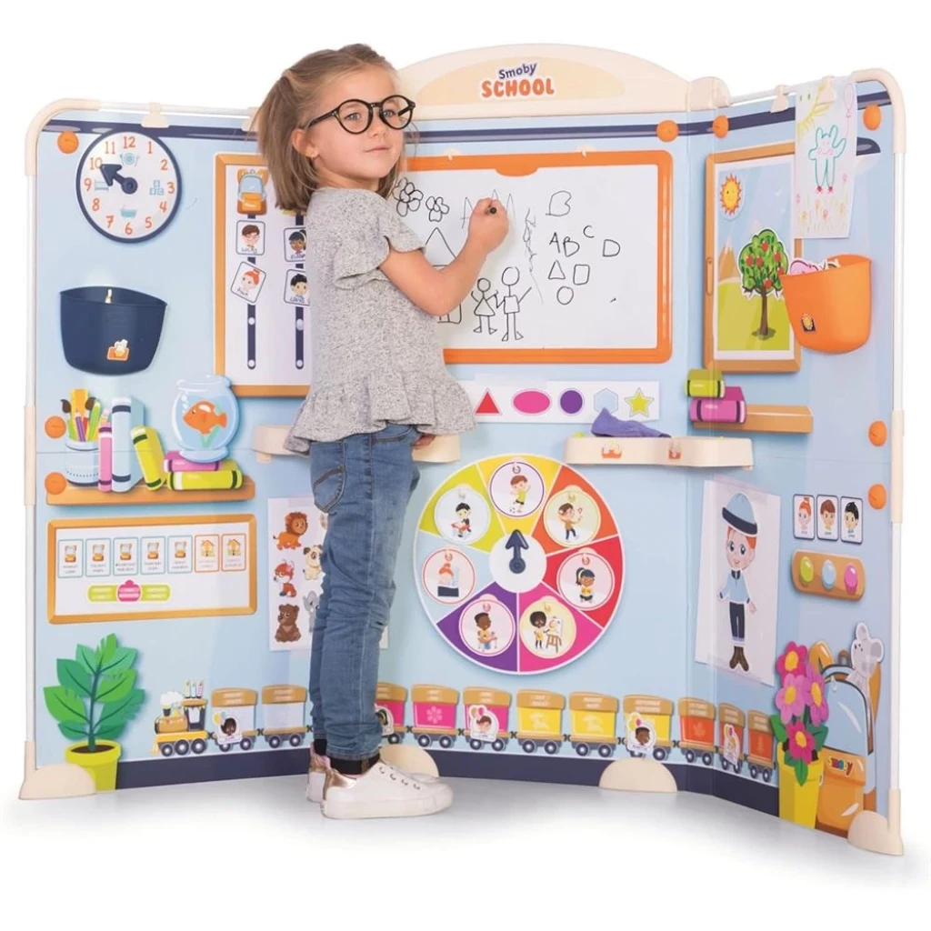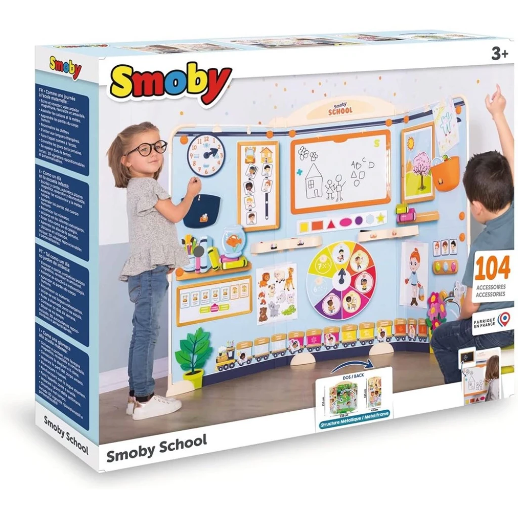 OYUNLAR: Yazı, çizim ve aritmetik için yazı tahtası - Dönen ellerle saati öğrenmek - Varlığı veya yokluğu gösteren özelleştirilebilir isim kartları - Haftanın günlerinin görüntülenmesi - Günlük aktivitelerin görüntülenmesi - Bireysel aylarla doğum günü treni - Mevsimler ve hava durumu hakkında bilgi edinmek için hava durumu ağacı - Vücut kısımlarını belirlemek için kartlar - AKSESUARLAR: tahta, silgi, silinebilir keçeli kalem, manyetik sayılar ve harfler - Oyun kartları Velcro noktaları ile sabitlenebilir - 3 yaşından büyük çocuklar için uygundur - Fransa'da yüksek kaliteli malzemeden yapılmıştır.