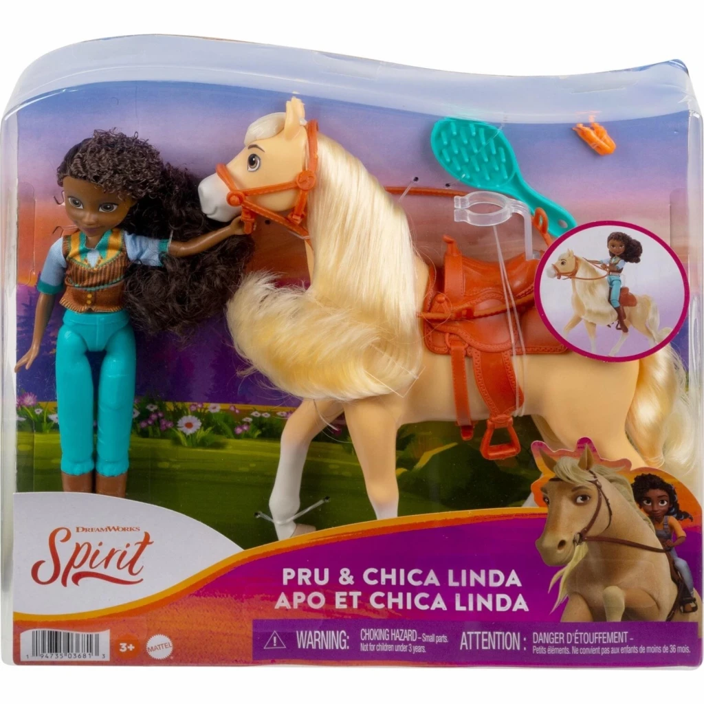 Spirit Bebek ve Güzel Atı Oyun Setleri HHL11-HFB90 DreamWorks karakteri Spirit ile dostluğu ve cesareti keşfedip maceraya katılın. Spirit Bebek ve Güzel Atı serisinde Lucky ve atı Spirit, Abigail ve atı Boomerang ile Pru ve atı Chica Linda seçenekleri bulunur. Sevimli kumaş kıyafetler giyen, 17 cm boyundaki bebekler, hareket kabiliyeti sunan 7 eklemiyle oyun eğlencesine uygun duruşlar sergileyebilir. 20 cm uzunluğundaki atlar, hareket edebilen başlarıyla farklı duruşlar sergileyebilir. Yumuşak uzun yeleleri ve kuyrukları ise tarama ve şekillendirme eğlencesine uygundur. Setlere dahil olan c-klips bebeğin atın üzerine binmesini sağlar. Ayrıca Chica Linda ve Boomerang için eyer, dizgin, fırça ve ödül yiyeceği bulunur. DreamWorks karakteri Spirit ile dostluğu ve cesareti keşfedip maceraya katılın. 3 yaş ve üzeri çocuklar için uygundur