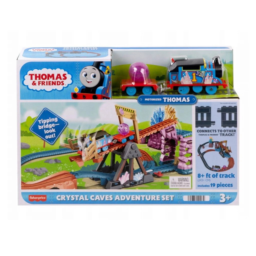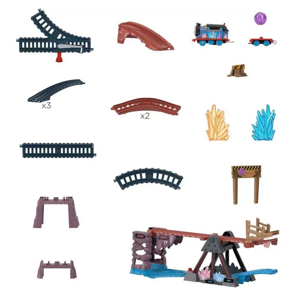 9 adet ray parçası, hareket eden havalı bir köprü, Kristal Mağaraları'nın eğlenceli ayrıntıları ve yük bulunan bu aksiyon dolu tren setiyle minik makinistler, özel yükü teslim etmesi için Thomas'ı tekrar tekrar mağaralara gönderebilir - Thomas'ı hareketli muhteşem köprünün üstünden veya altından geçirmek için ray makasını kullanın - Yaklaşık 245 cm uzunluğunda ray bulunur - Ahşap olanlar hariç tüm Thomas ve Arkadaşları ray setleriyle uyumlu olan bu setle daha fazla maceraya atılın (Diğer raylar ayrı olarak satılır ve stoklarla sınırlıdır)